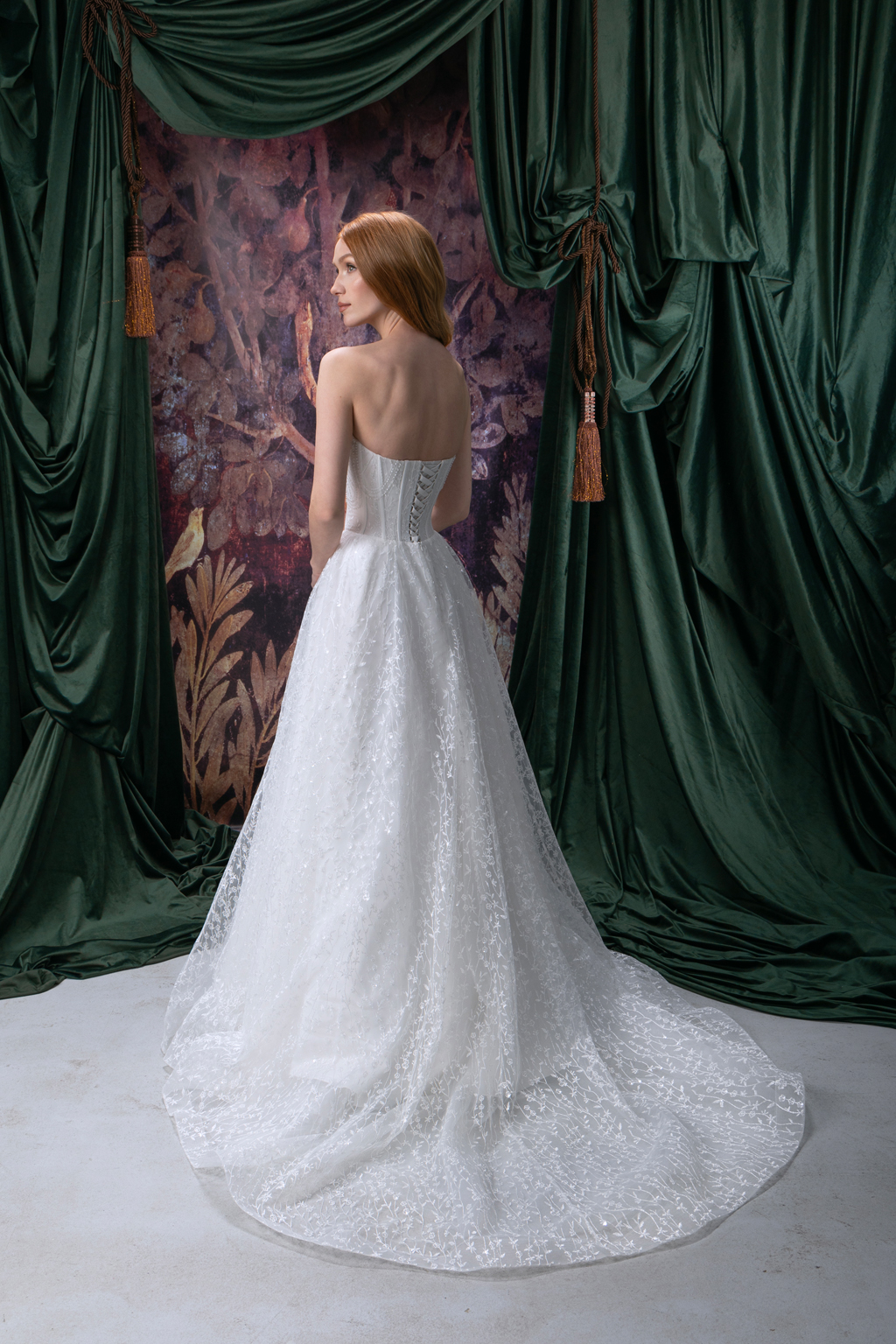 Свадебное платье разработано и изготовлено в Европе. Это платье может быть сшито на заказ по вашим меркам.