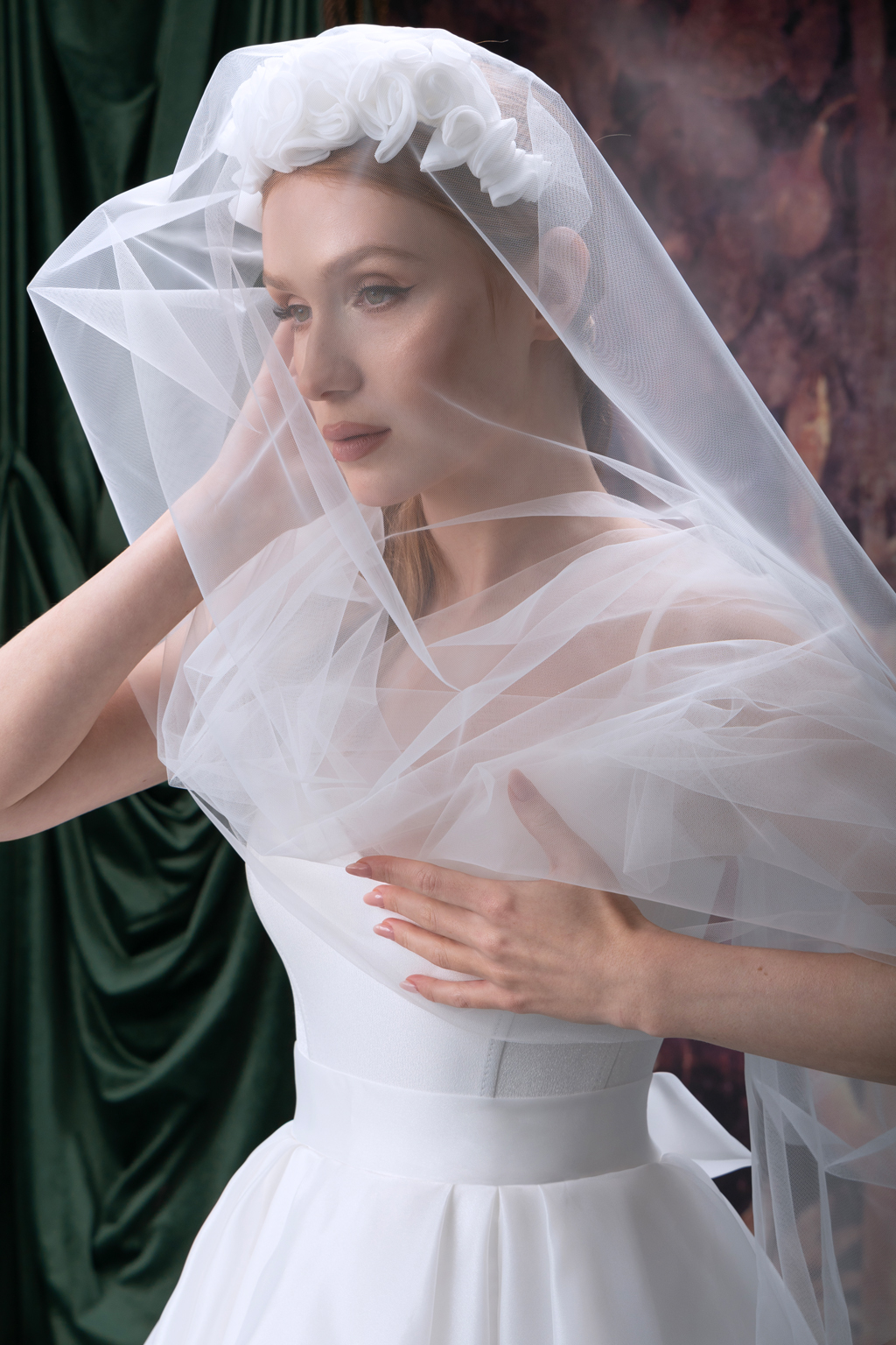Основные ткани: Атлас, органза, фатин ж., подкладка