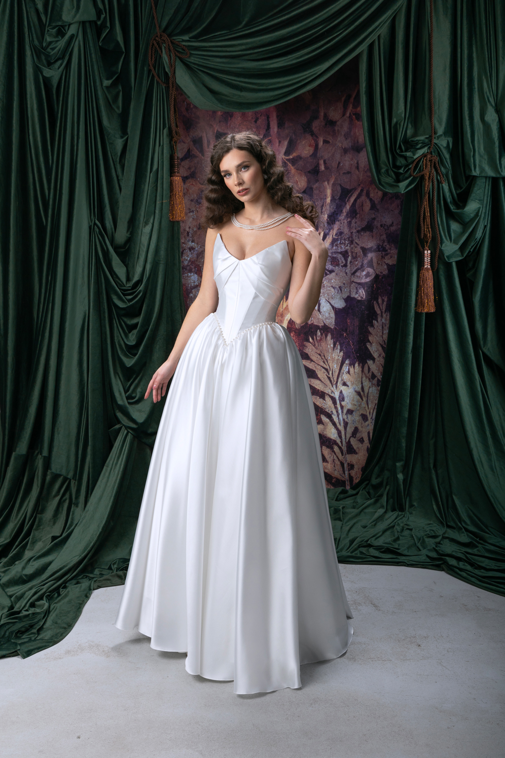 Свадебное платье разработано и изготовлено в Европе. Это платье может быть сшито на заказ по вашим меркам.